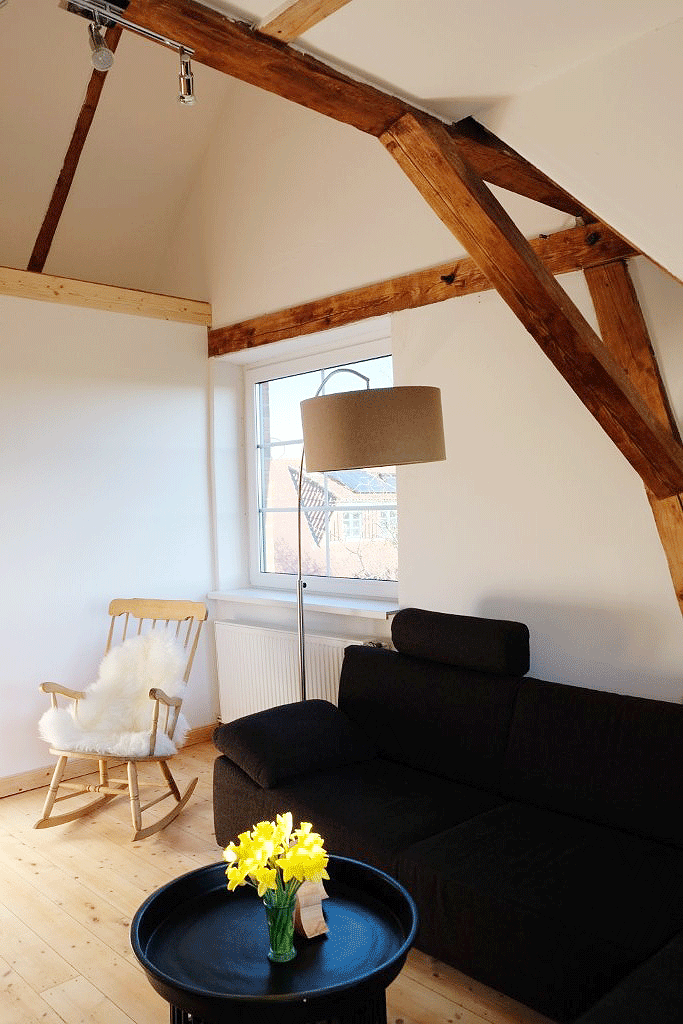 Im Dachgeschoss hat man einen wunderschönen Blick in die weitläufige Feld- Waldlandschaft Schleswig-Holsteins.